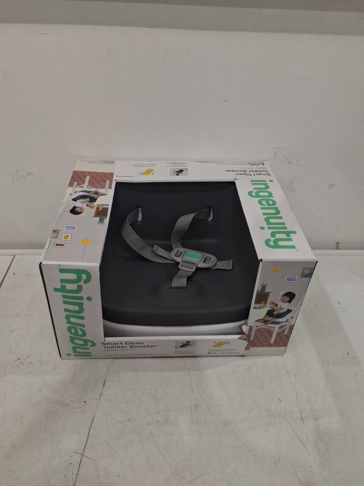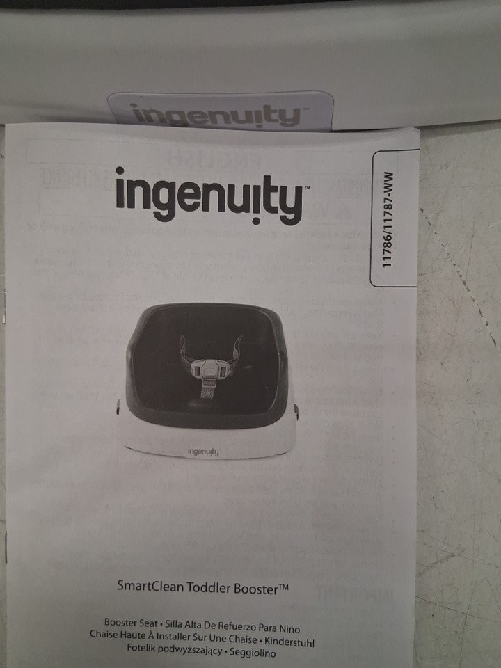 INGENUITY SMARTCLEAN TODDLER BOOSTER SEAT - 33LBS CAPACITY - WHITE/SLATE GREY (MODEL: 11786/11787))