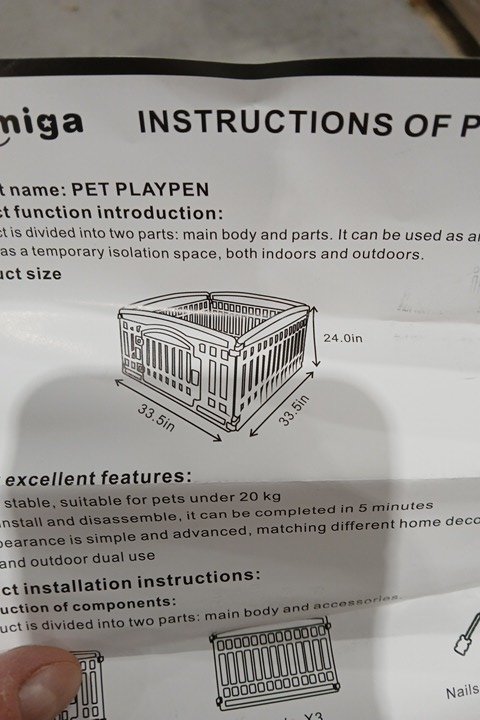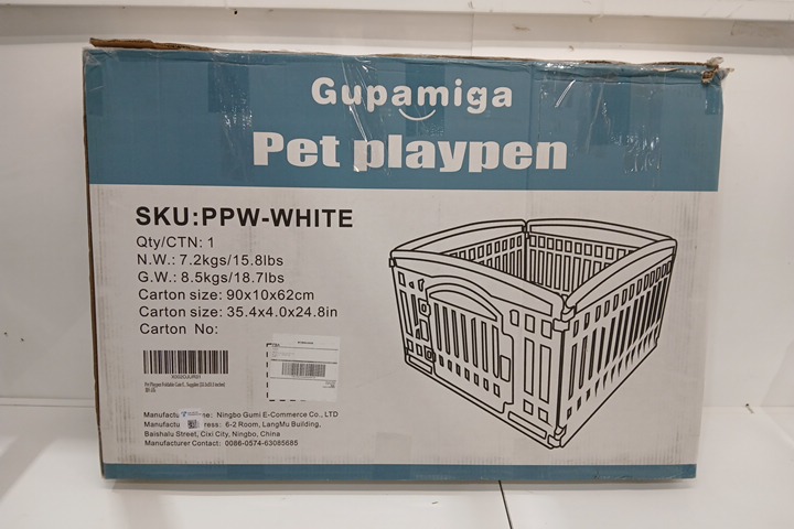 GUPAMIGA PET PLAYPEN WITH DOOR FOLDABLE GATE MADE OF HEAVY PLASTIC 4-PANELS - 33.5" x 33.5" - WHITE (MODEL: PPW-WHITE)