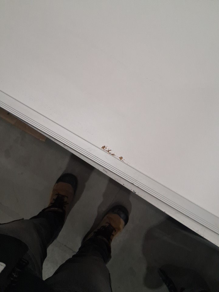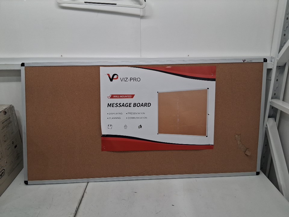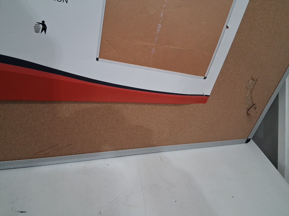 corkboard is distressed from shipping with no outer packaging and trim has scuff marks