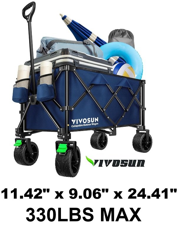VIVOSUN COLLAPSIBLE WAGON with Cup Holders & Side Pockets - 11.42" x 9.06" x 24.41" -220 lbs. Max (MODEL:‎VSFW001-BLUE-ZYJ)