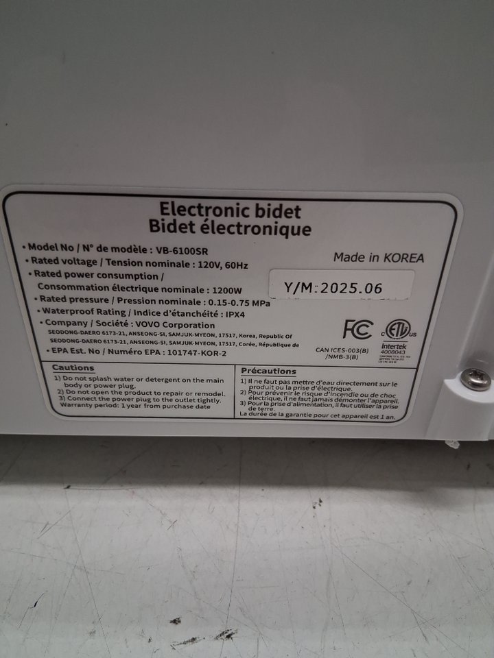 VOVO Electronic Bidet toilet seat with LED Nightlight, heat functions & remote control - ROUND - white (Model: VB-6100SR)