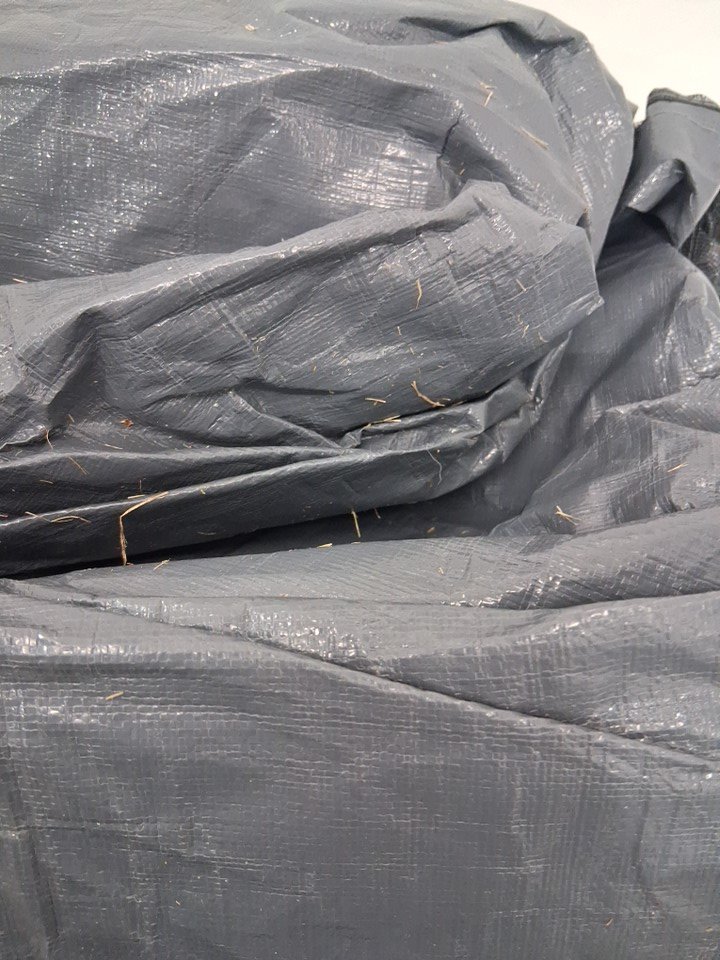 cover has loose grass on it and dirt.