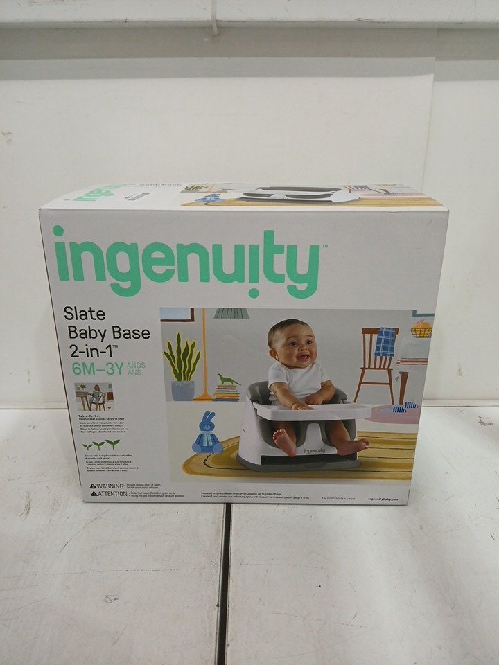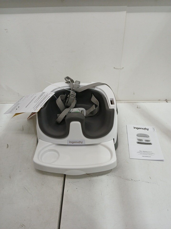 INGENUITY BABY BASE 2-IN-1 BOOSTER SEAT WITH FOOD & DRINK TRAY - 50LBS CAPACITY - WHITE/SLATE GREY (MODEL: 11576)