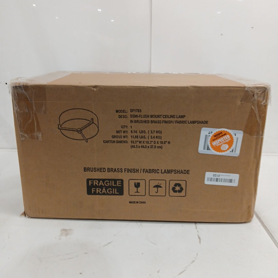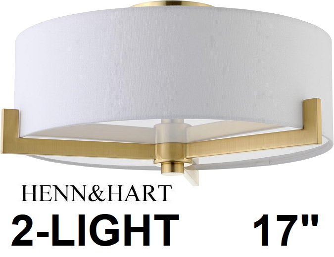 HENN&HART 2-Light Semi Flush Mount Light Fixture Ceiling Lamp with Fabric Shade - 17" diameter - Brushed Brass/White (Model: SF1783)