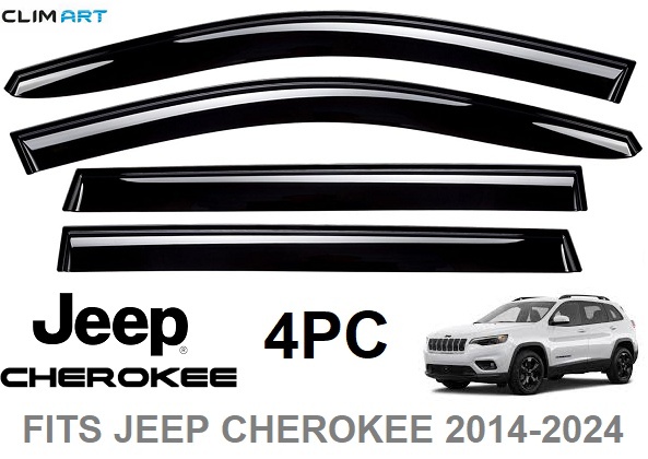 4pc clim art rain guard deflector visors - compatible with jeep cherokee 2014 to 2024 - black (model: 414334)