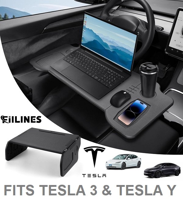 fiilines foldable car tray desk - compatible with tesla 3 and tesla y - grey (model: ‎st-3605)