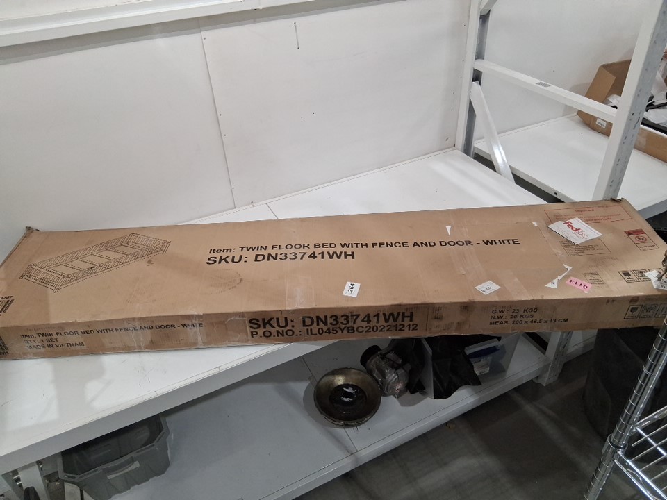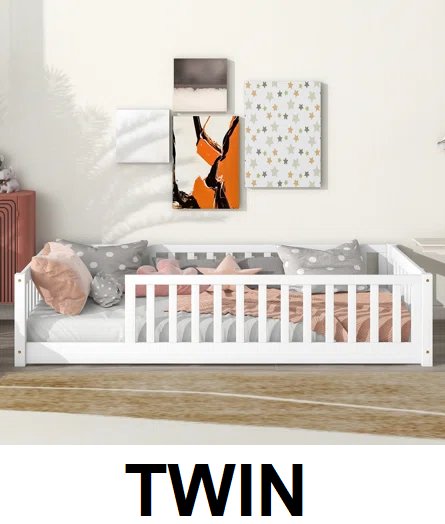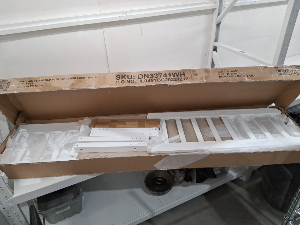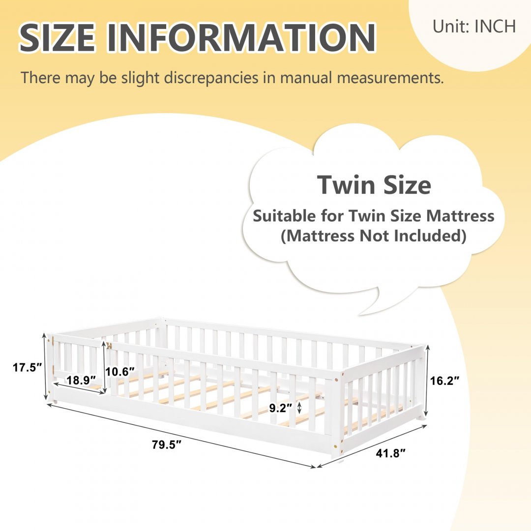 kids floor platform Bed with Fence and door - twin - white - (w50459207/dn33741wh)