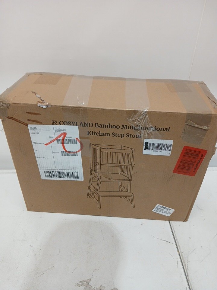 COSYLAND Height Adjustable Toddler Standing Tower Kitchen Step Stool - 35" x 18" - Blonde Bamboo (model: CS00120-1-CA)