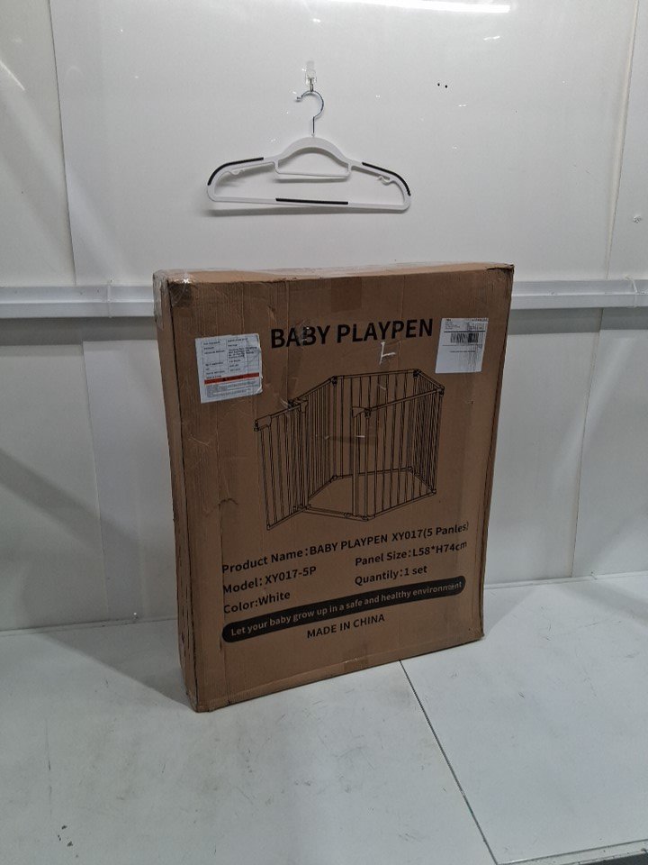 Patywaga 5-Panel Baby Playpen Safety Gate Freestanding White Metal Barrier - 22.8" x 29.1" Panels - (Model: XY017-5P)