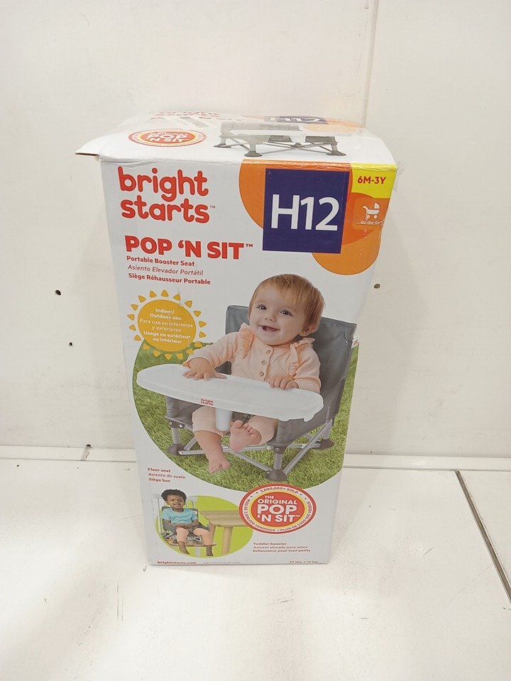 Bright Starts POP 'N Sit Portable Booster Seat with carry bag - 33LBS max - Grey (model: H12)