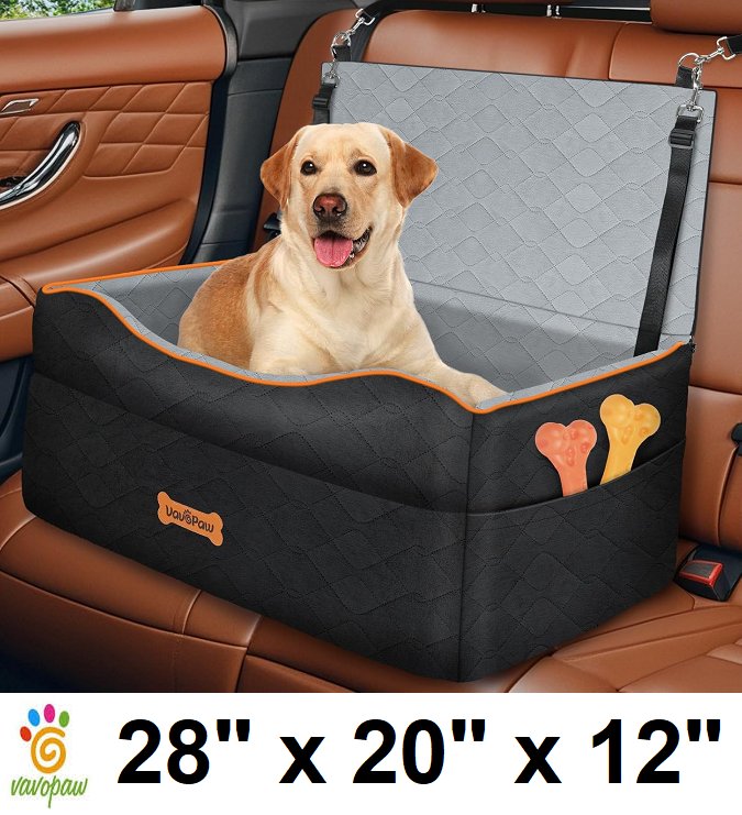 vavopaw dog & pet car seat with safety buckles for medium dogs - 28" x 20" x 12" - black, grey