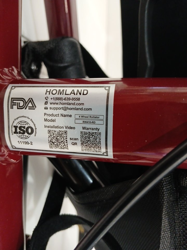 HOMLAND LIGHTWEIGHT Adjustable Height Folding 4 WHEEL ROLLATOR WALKER - 33'' - 41'' - 350lbs cap - Red (MODEL: RW410-RD)