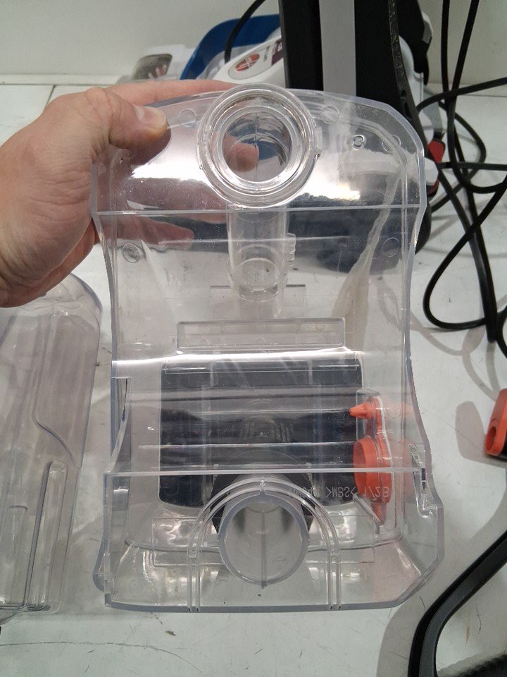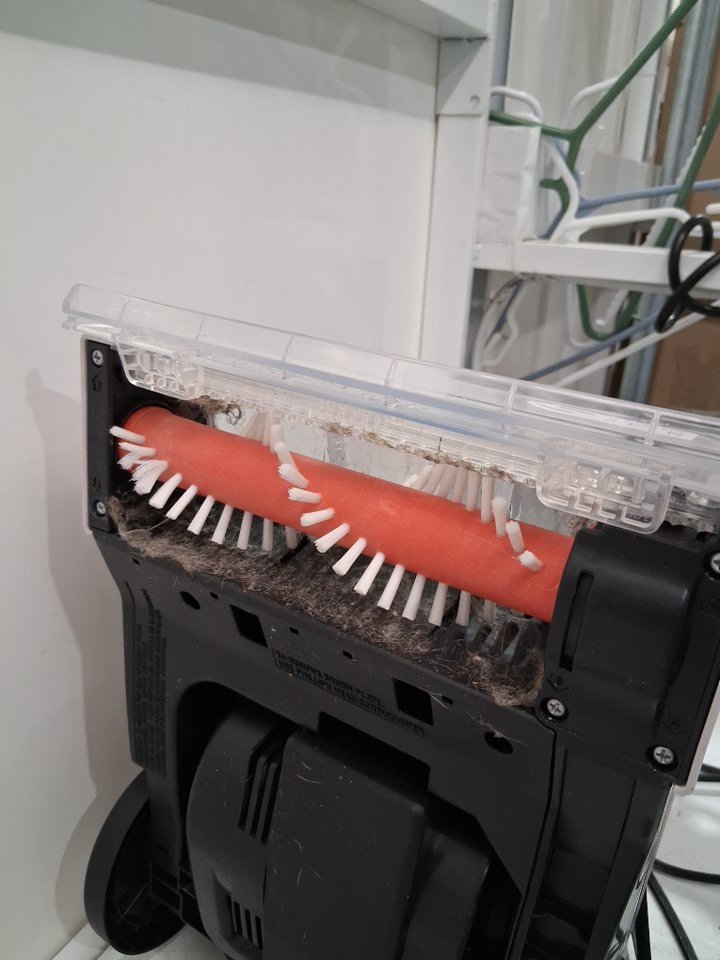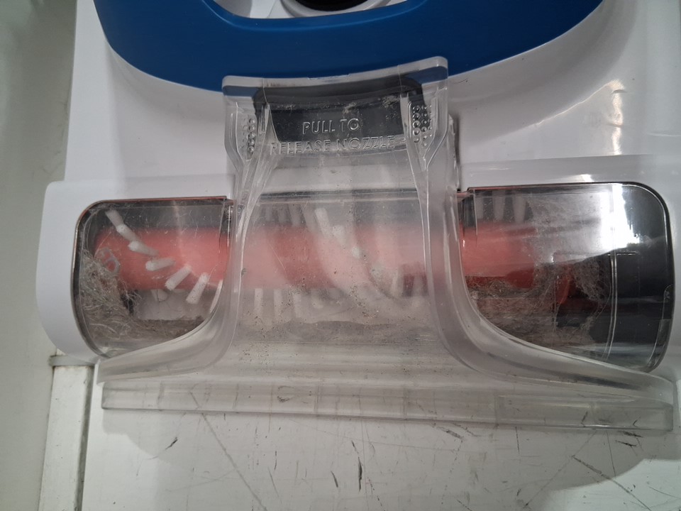 Some dust and hair in the carpet cleaning spinning brushes There is also some water inside of the water tank reservoir Dust collecting tank also has a light layer of dust present