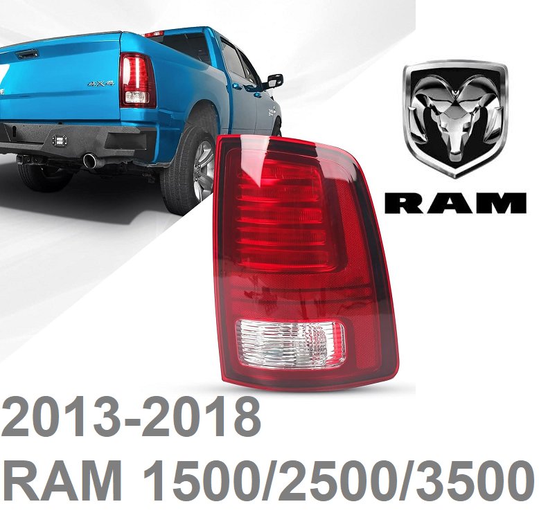 fione led passenger side tail light replacement for 2013 to 2018 dodge ram 1500, 2500, and 3500 models - black/red (model:50693b)