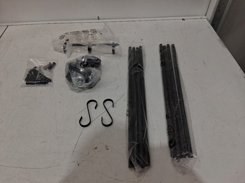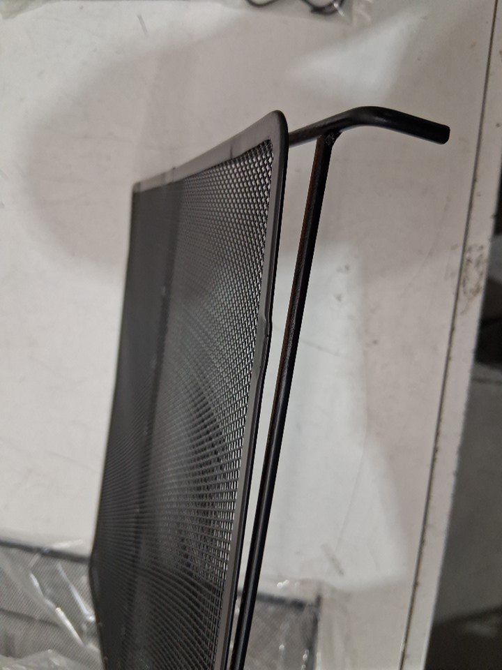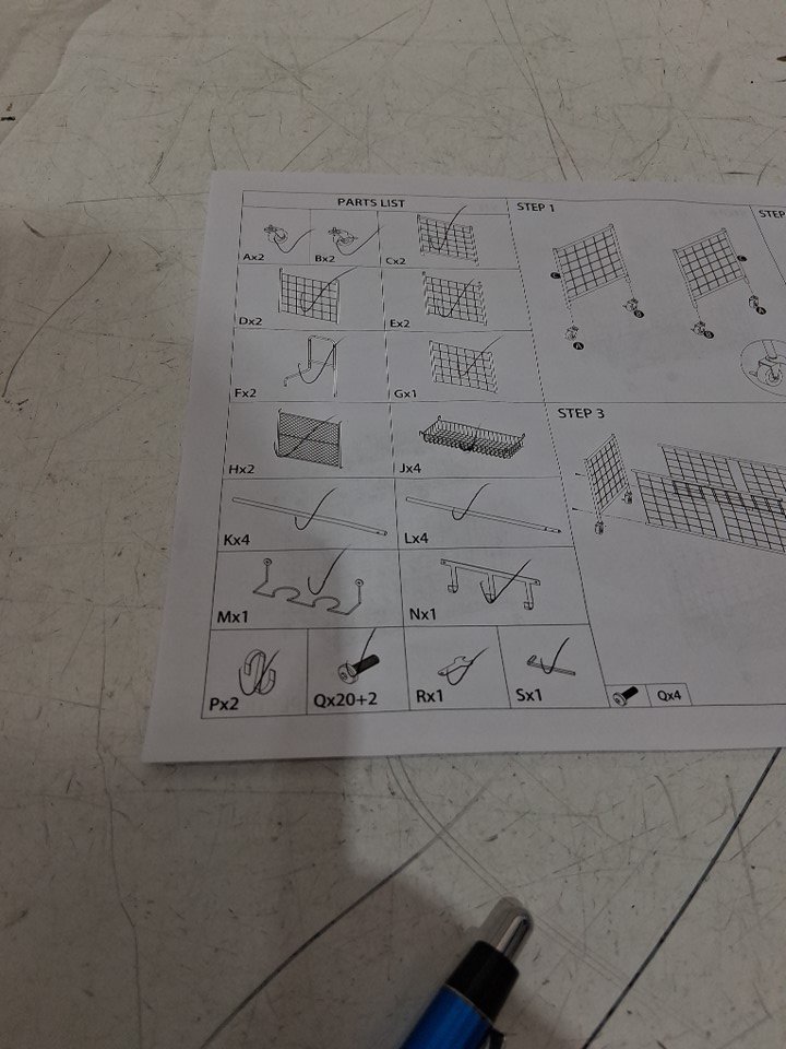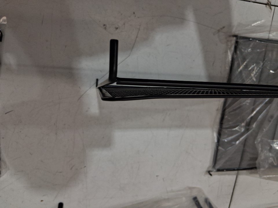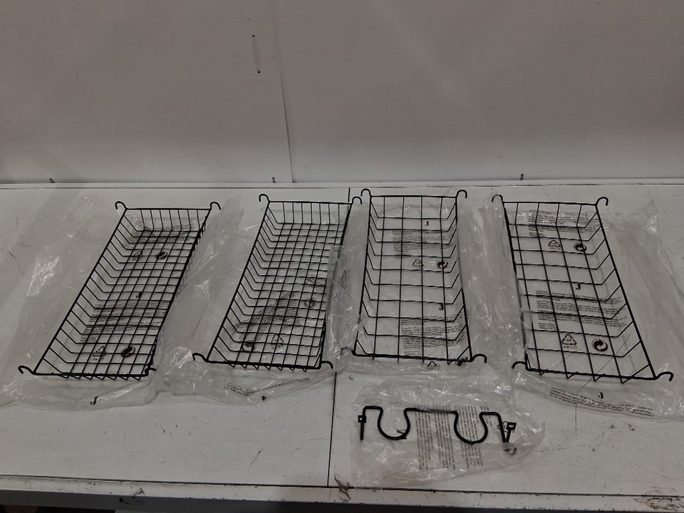 One wire panel is dented from shipping but stays attached and functional, see photos for a closer look. All pieces accounted for by staff.