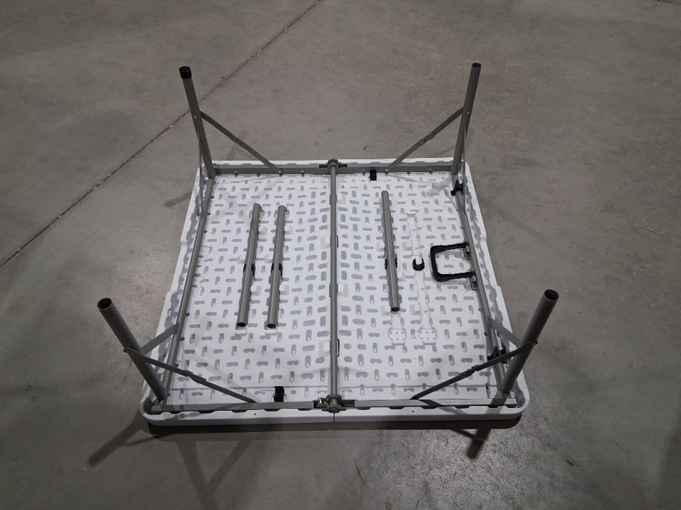 Please note one of the leg extension pieces is missing so the table cannot be laid out at its full height, see photos.