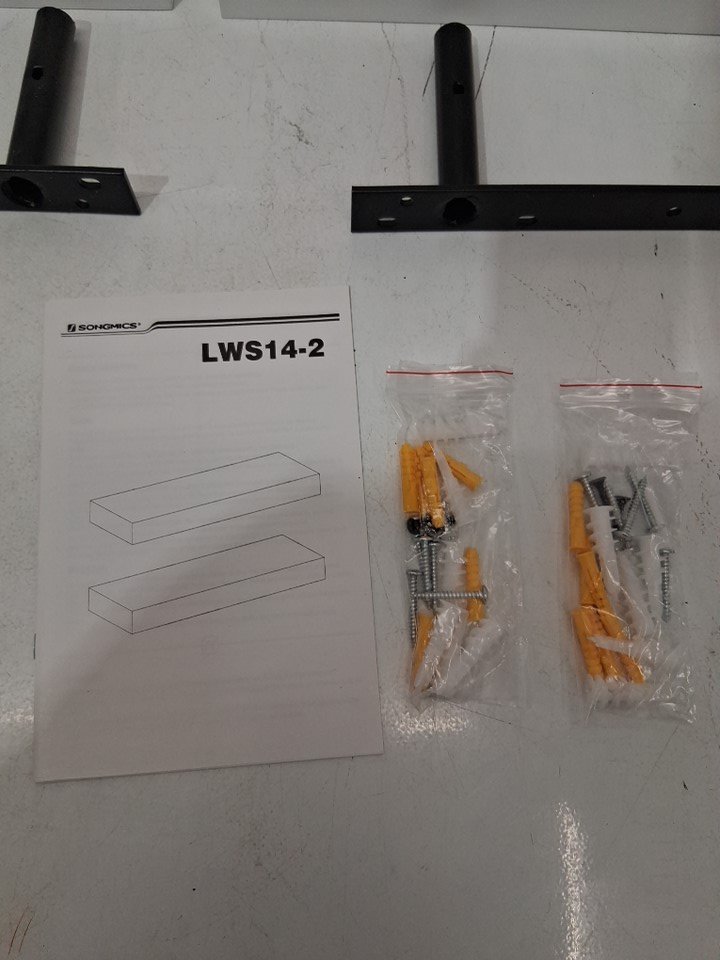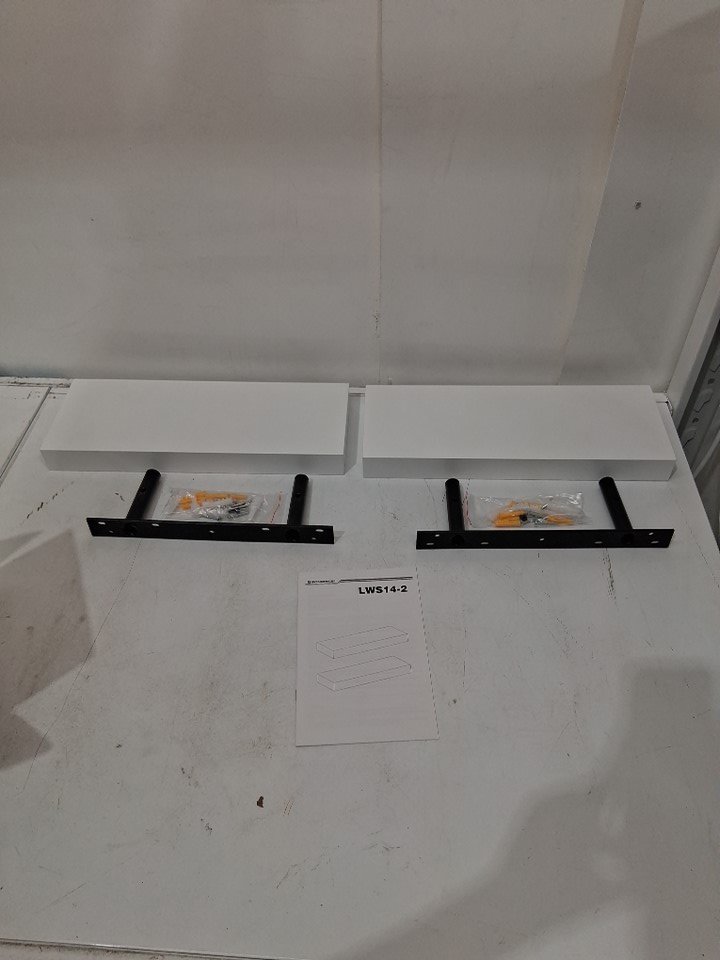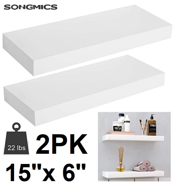 2PK SONGMICS FLOATING INVISIBLE BRACKET SUPPORT WALL SHELVES - 15" x 6" - 22LBS WEIGHT LIMIT - WHITE (MODEL: LWS14WT-2)