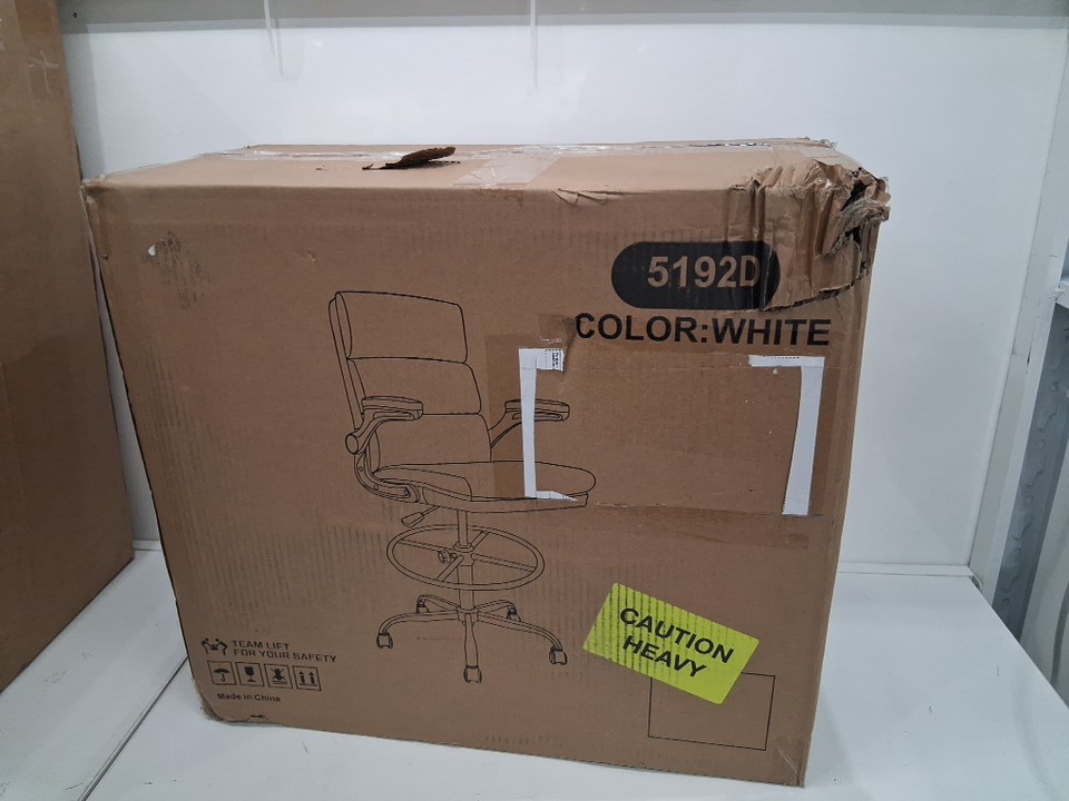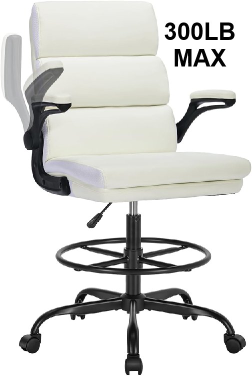 Drafting Tall Office Chair with Padded Flip-up Armrests - 300LBS - white (MODEL: ‎LY-5192D-white)