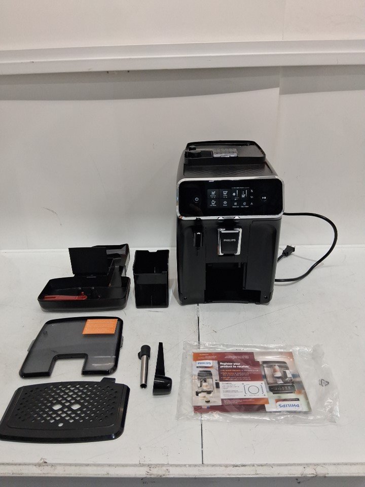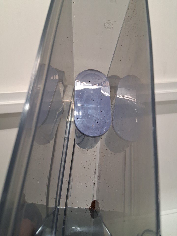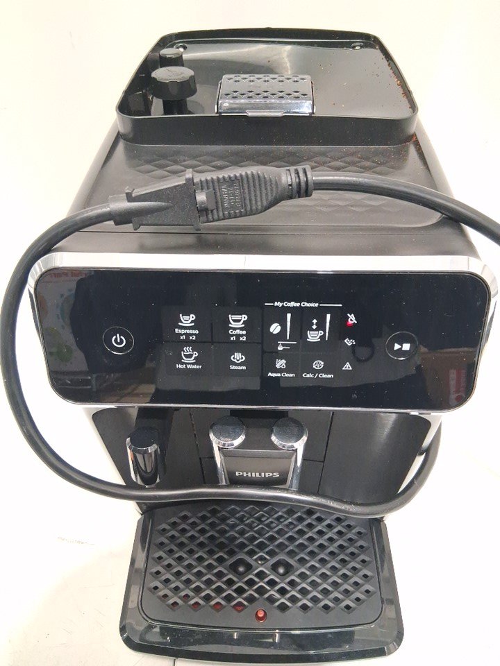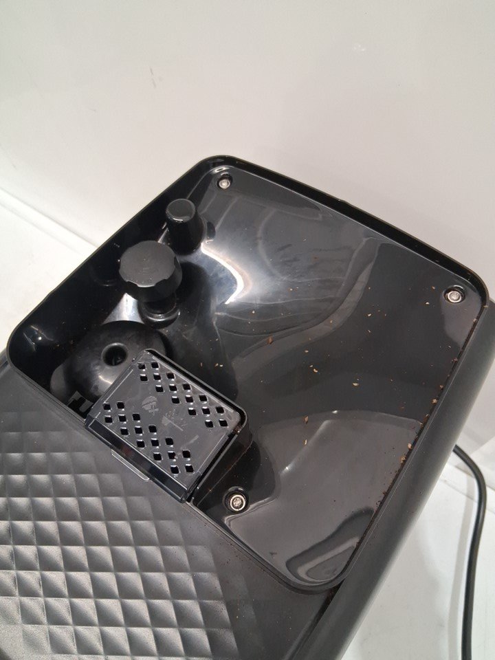 Minor coffee grounds debris throughout machine from previous use, tested for power