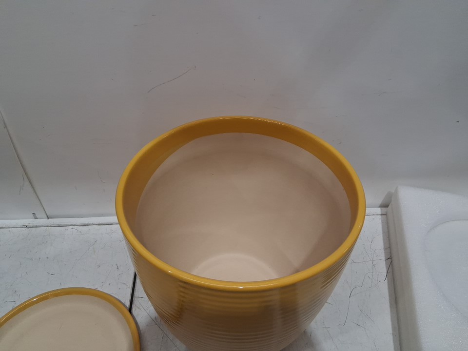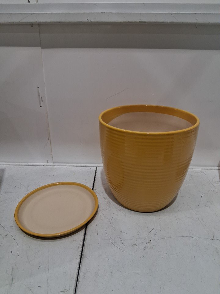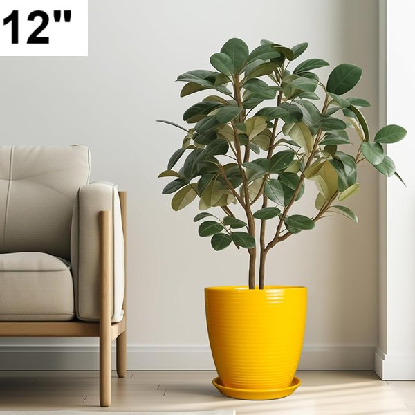 ceramic pot for plants pot with drainage hole and round saucer -12" - yellow