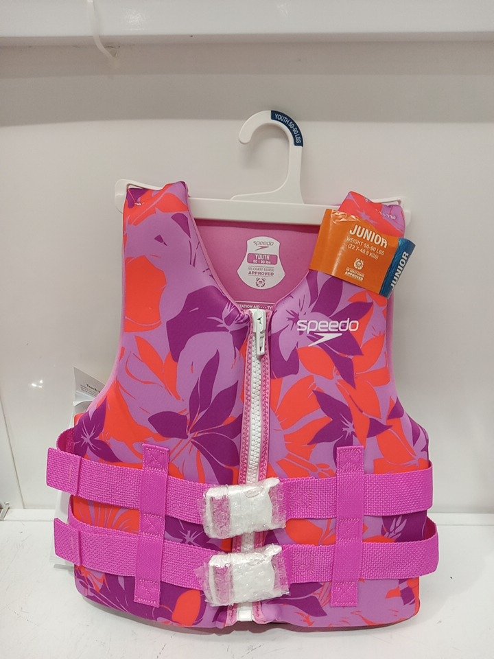 YOUTH Speedo Junior ZIPEER Life Jacket Vest - 50-90lb - Pink/Purple/Orange