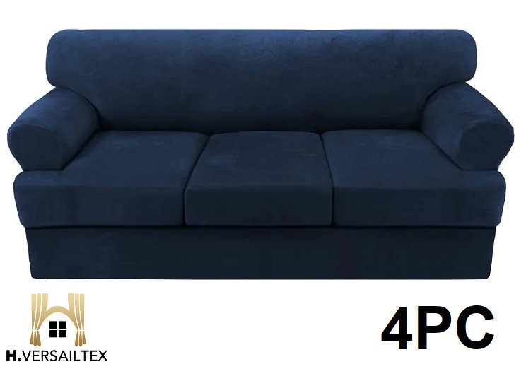4pc H.VERSAILTEX thick velvet sofa slipcovers for 3 seat sofa - 36" x 39" x 72"-90" - navy blue