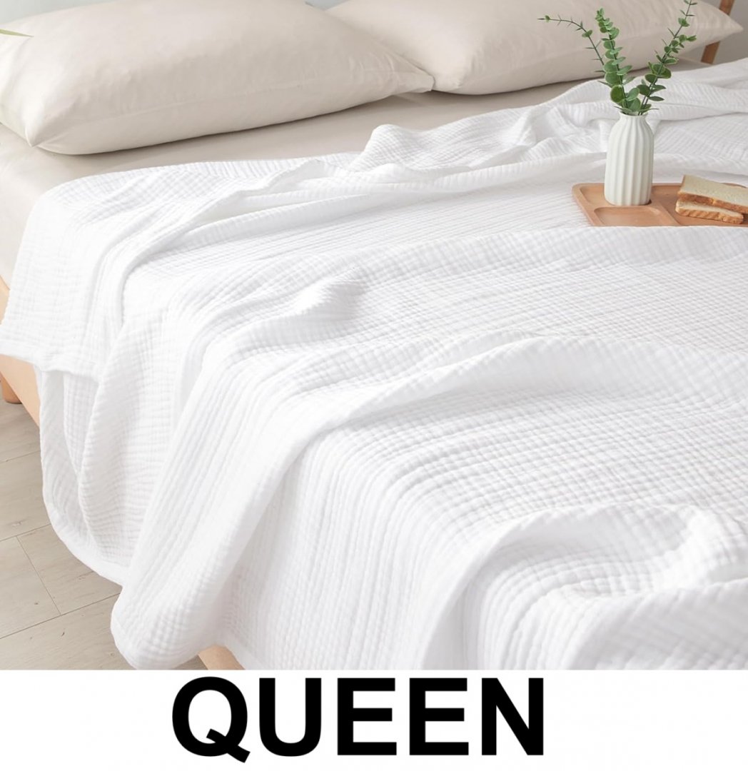 pacific home fashion 100% cotton muslin blanket - queen size (90" x 90") - white