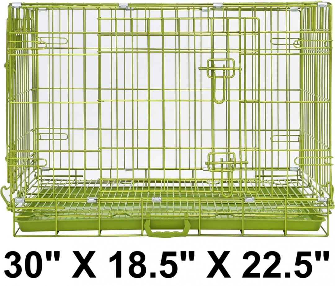 TAMPASINION Foldable Collapsible Dog Crate FOR MEDIUM DOGS - 30.2"L x 18.9"W x 22.4"H - GREEN