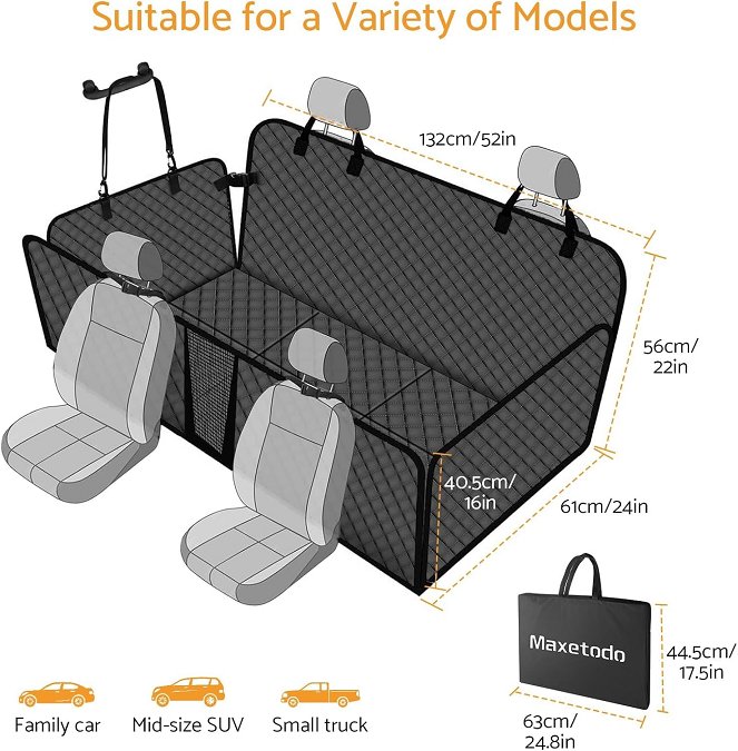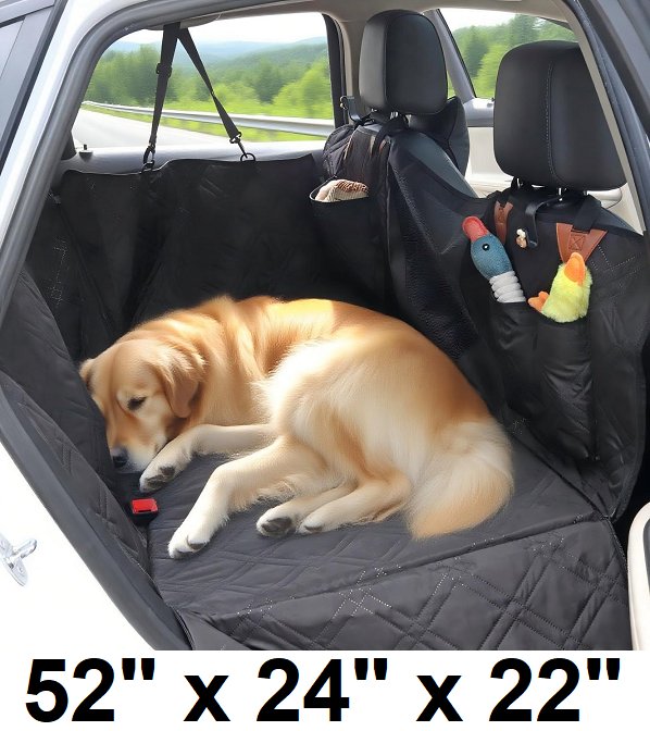 maxetodo allmeter Waterproof Dog Car Seat Cover for Back Seat, Hard Bottom Back Seat Extender with pockets - 52" x 24" x 22" - Black (With carry bag)