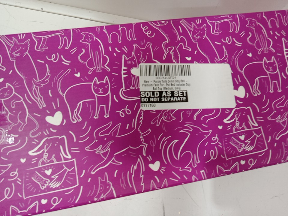 purple tails FLUFFY DONUT ROUND CUDDLER PET DOG/CAT BED and tennis ball - medium - GREY