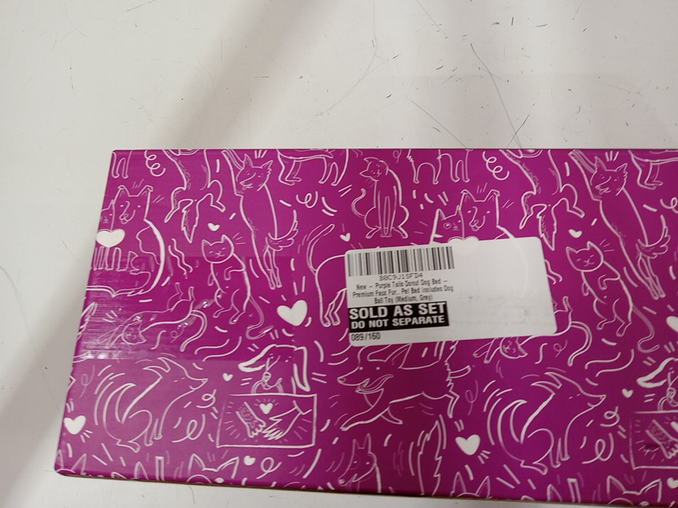 purple tails FLUFFY DONUT ROUND CUDDLER PET DOG/CAT BED and tennis ball - medium - GREY