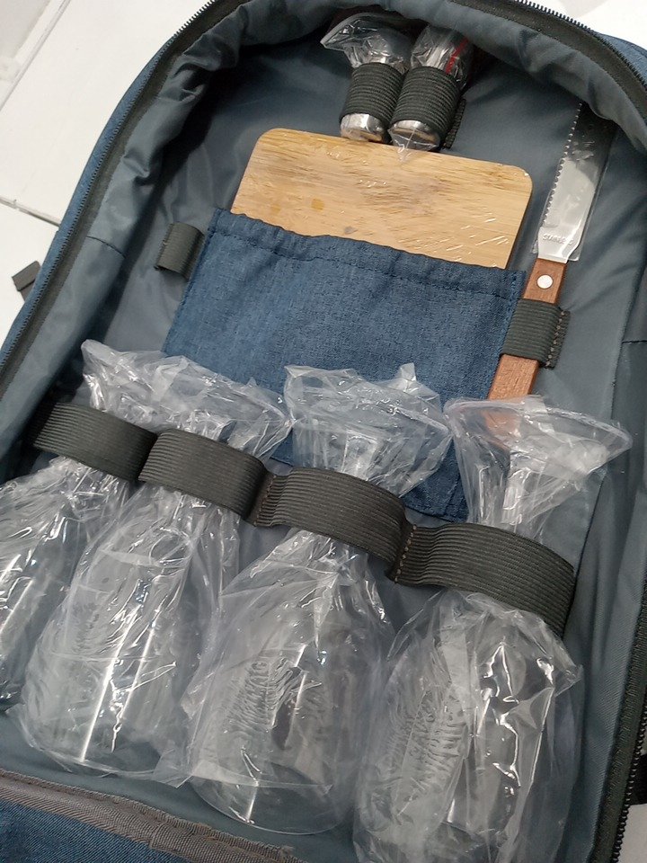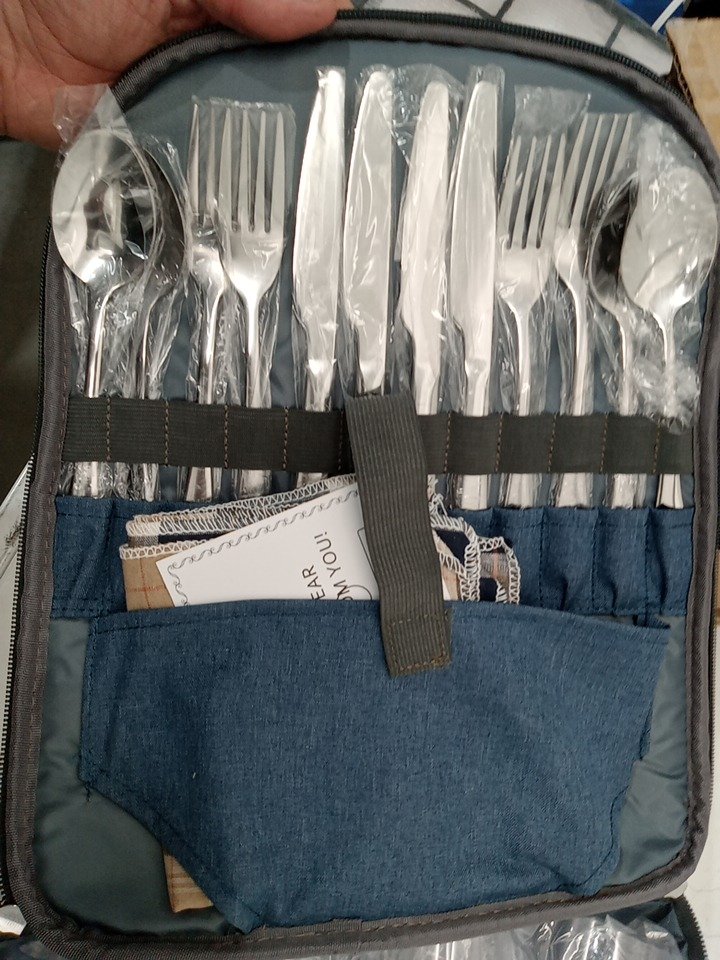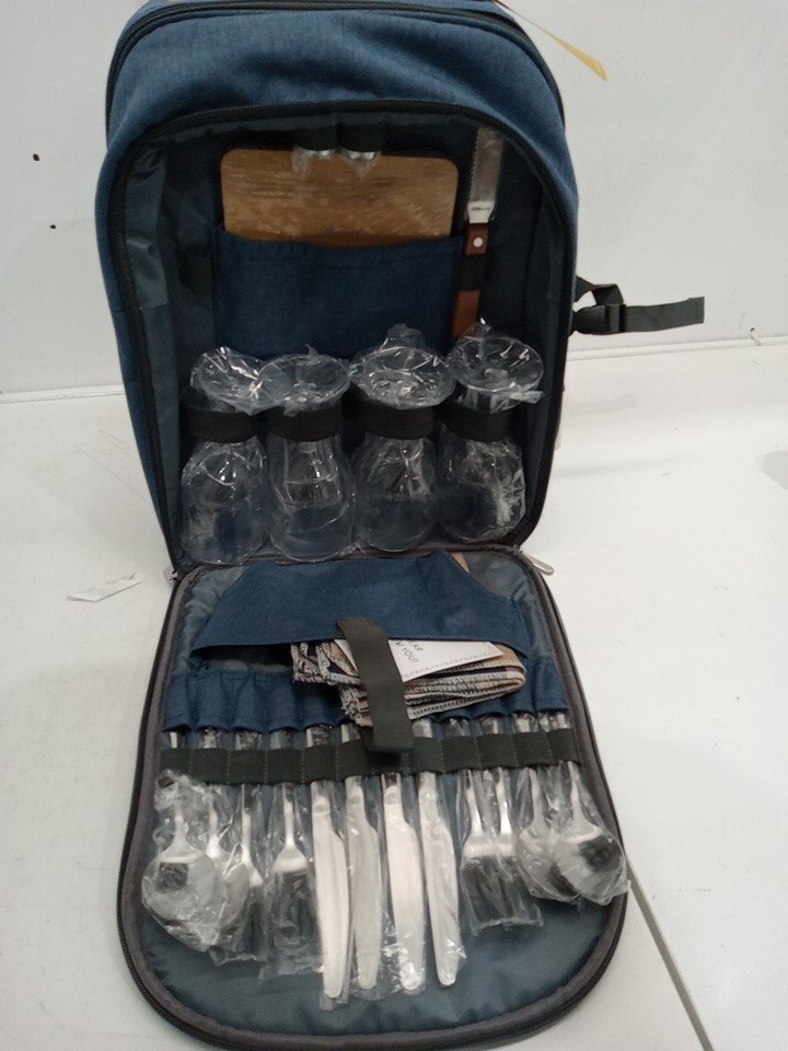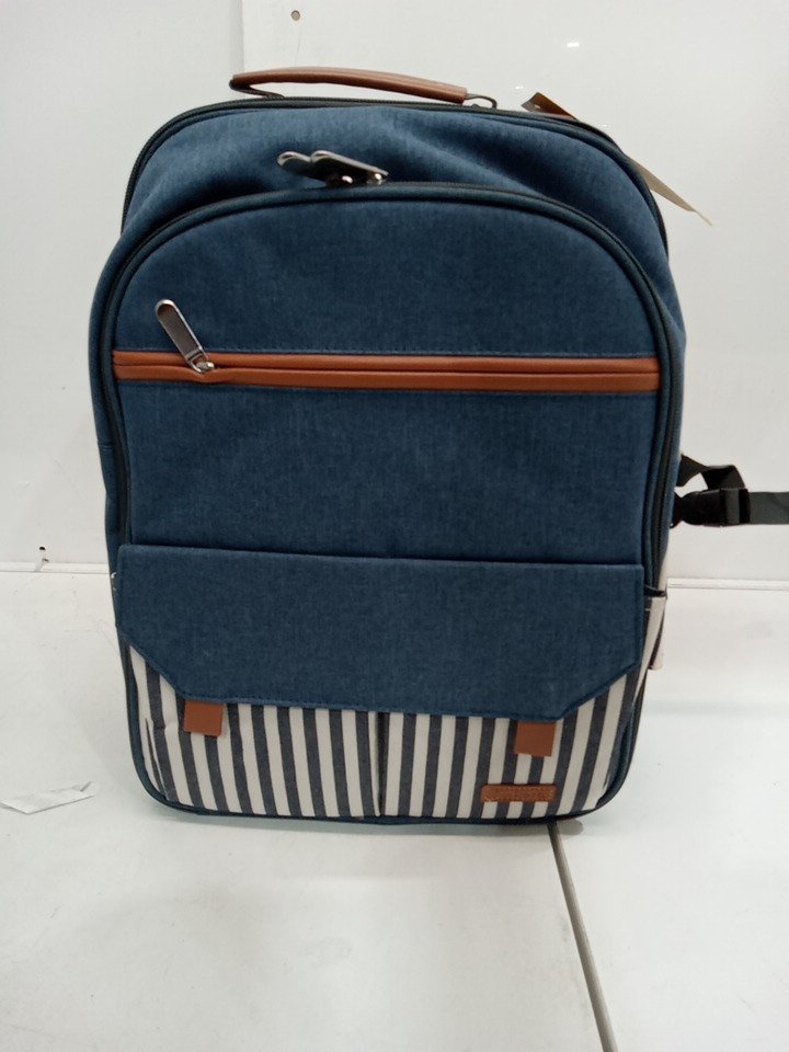 Sunflora Insulated Picnic Backpack Bag with Cooler Compartment -2 -PERSONS -BLUE/WHITE STRIPES