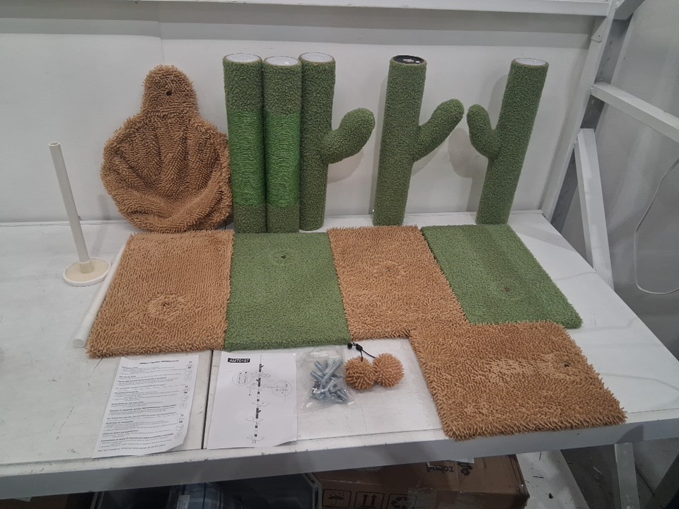 PAWZ ROAD 5-TIER FLOOR TO CEILING CACTUS CAT CLIMBING TREE WITH SCRATCHING POST HAMMOCK AND HANGING BALL - ADJUSTABLE HEIGHT 95"-108" - GREEN/brown (MODEL: AMT0187GN)