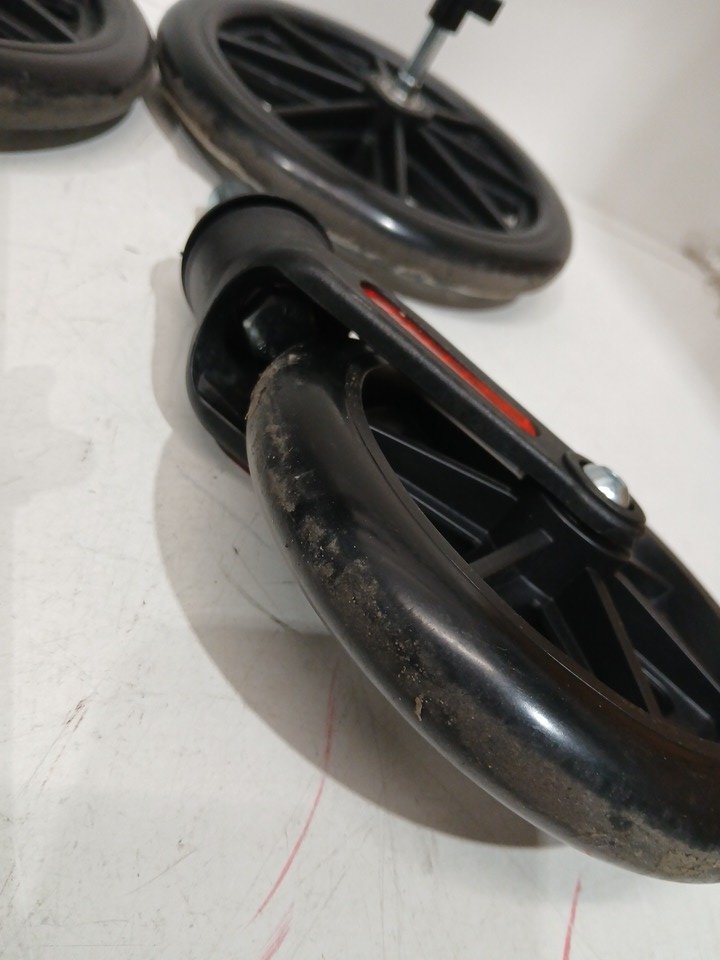 wheels are dirty from use missing on one of the wheel fasteners - included photo for reference -