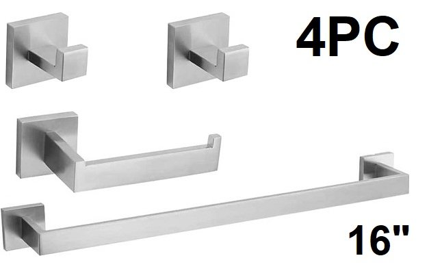 4pc Menbyci Square Bathroom Hardware Set - 16" towel bar - Stainless Steel