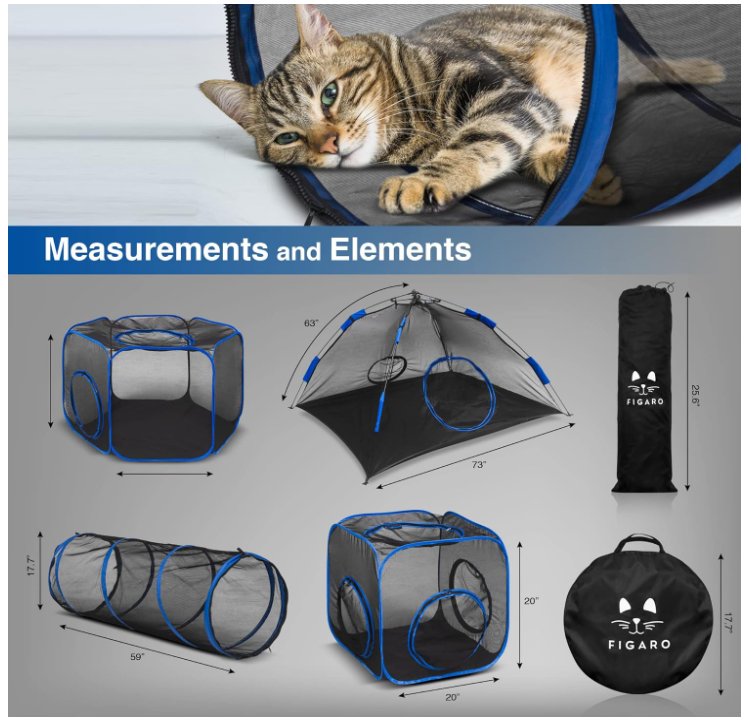 wolltex 6-in-1 Cat Tent/enclosure with Cat Tunnel - black/blue - (model: B0BQM4Z4YK)