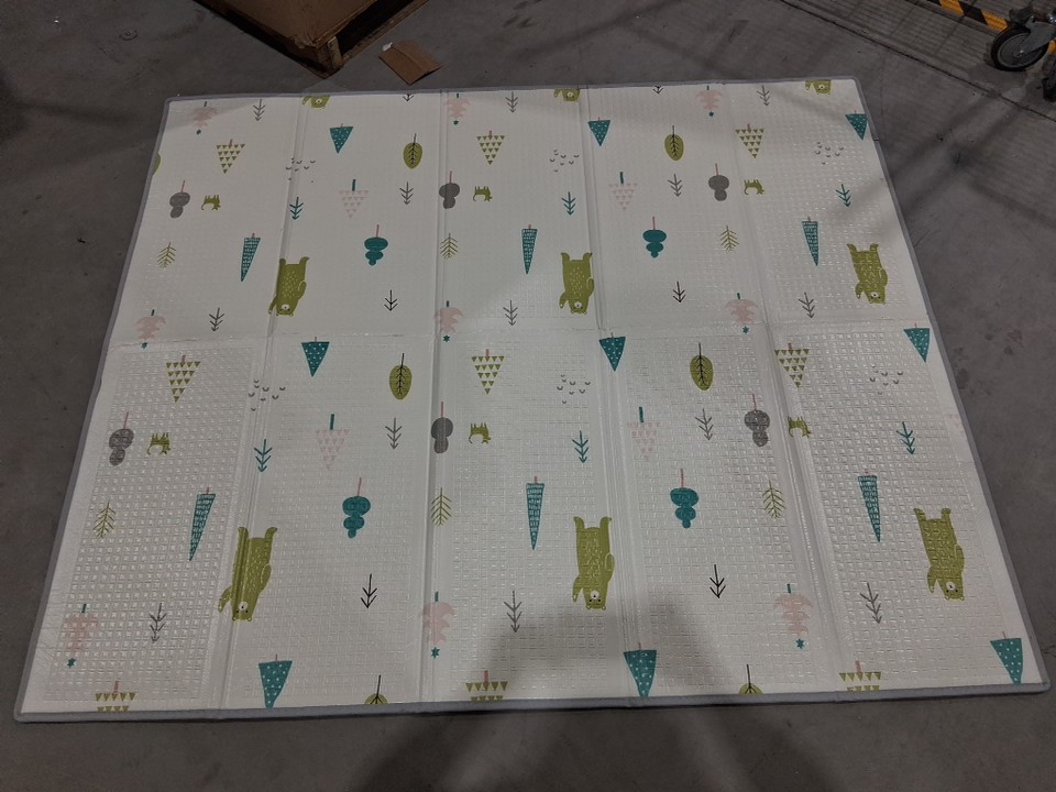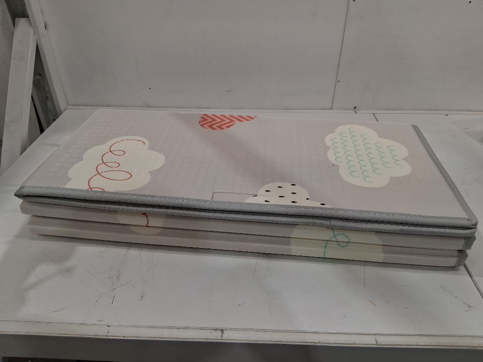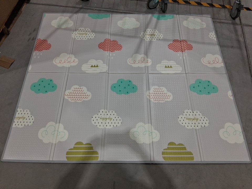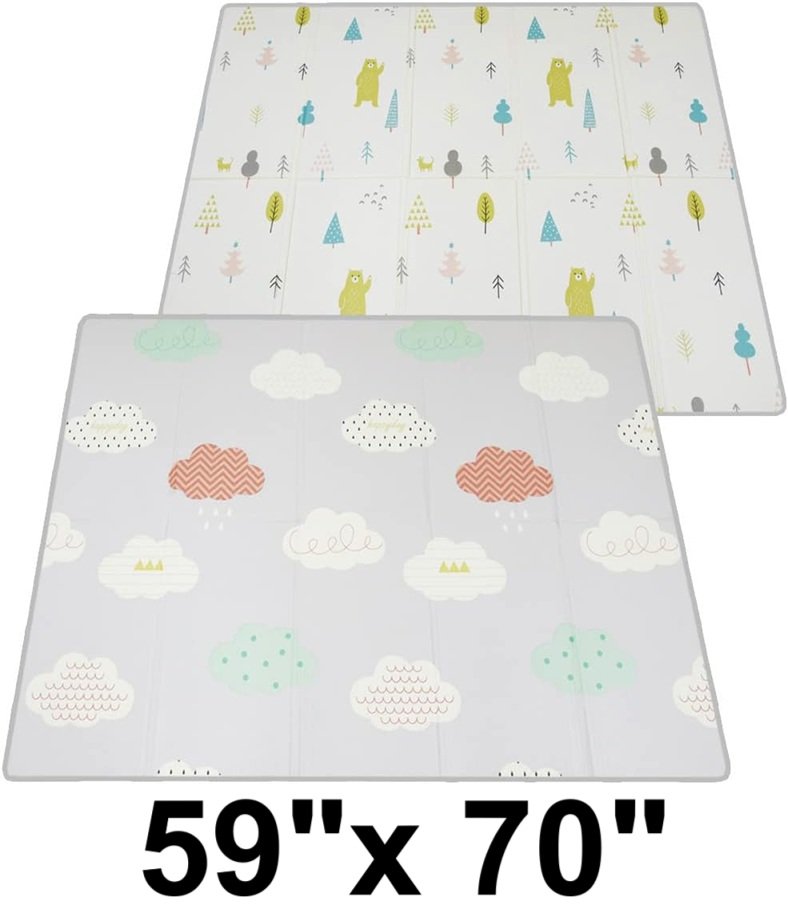 kids dual-sided folding waterproof play mat + carry bag - 59" x 70" - cloud/bear pattern