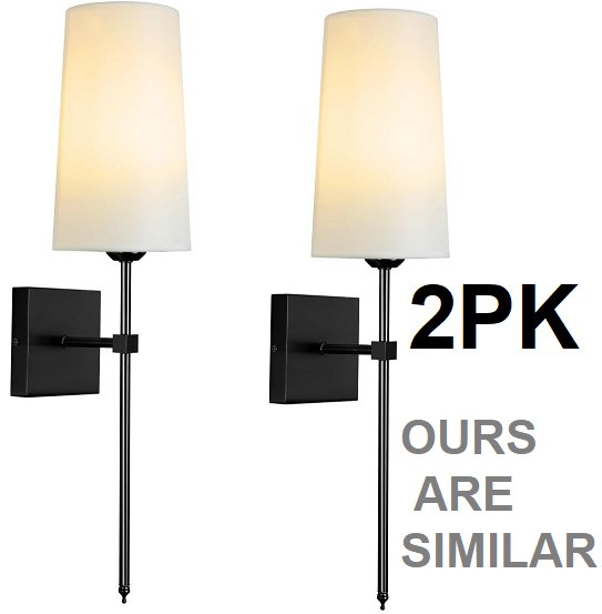 2PK WELLCOOR Wall Light with Dimmable Bulbs - BLACK / WHITE