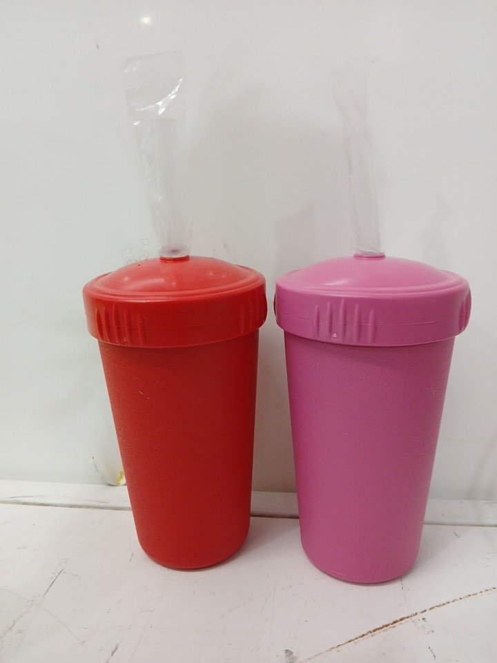 2pk Re-Play Straw Cup with Lid - 10oz - Bright Pink/red