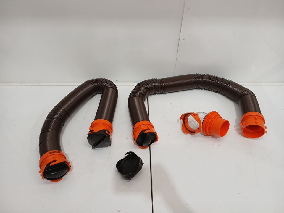 CAMCO RHINOFLEX RV SEWER HOSE, WITH TRANSPARENT ELBOW AND TST MAX TOILET TREATMENT, 20FT - orange and brown - (MODEL: 39741)