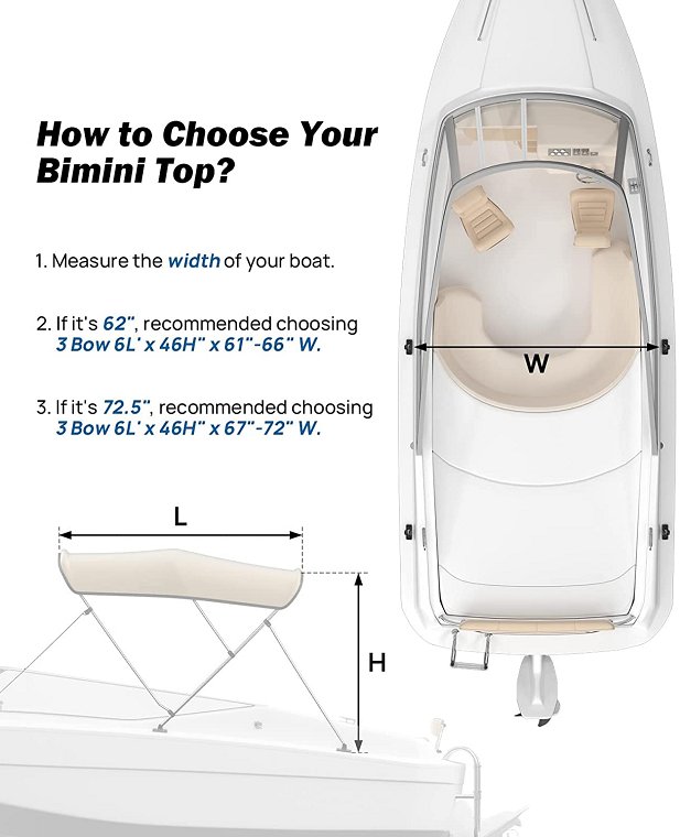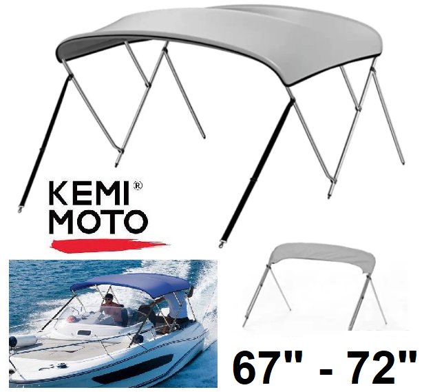 KEMIMOTO 3 BOW BIMINI TOP WITH REAR SUPPORT POLE - 72" x 46" x 67"-72" - grey (MODEL: B1604-00301gy)