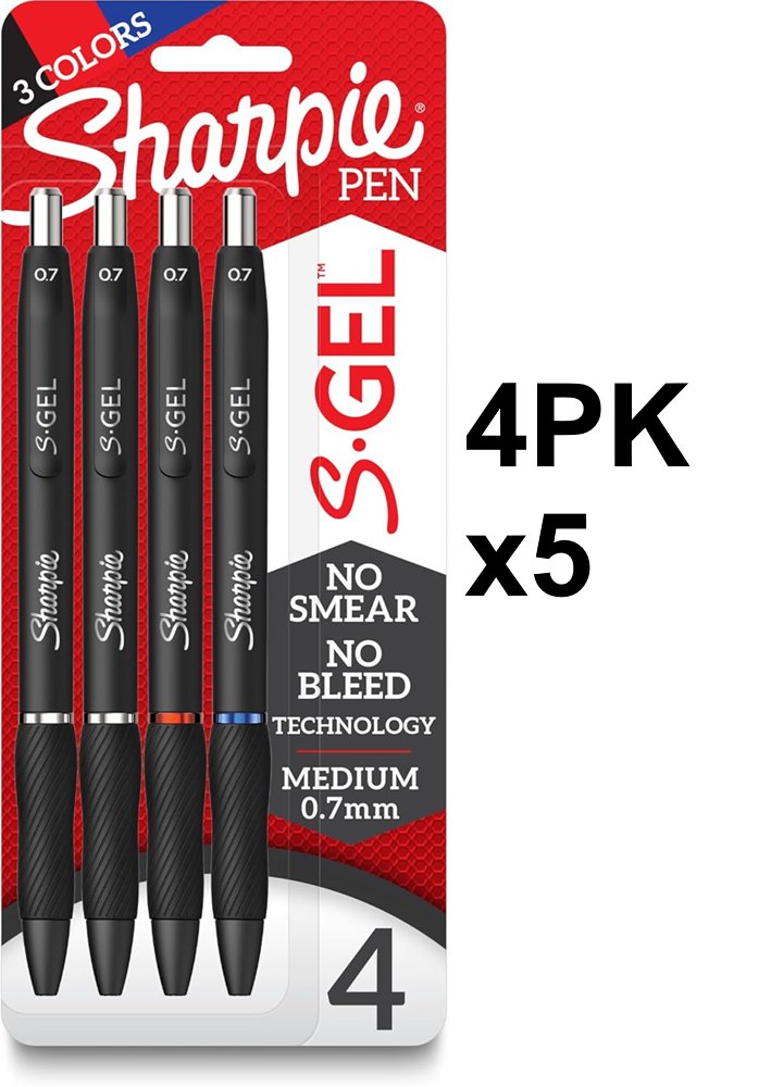 5 (4pk) Sharpie S-Gel, Gel Pens, Medium Point (0.7mm), Assorted Colors
