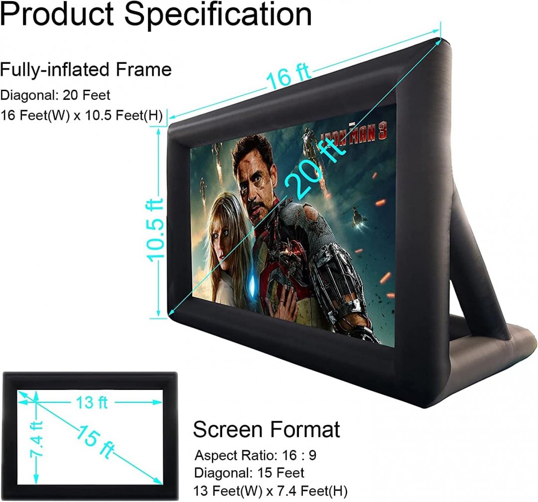estgora inflatable blow up outdoor projector screen with air blower - 20ft - black/white
