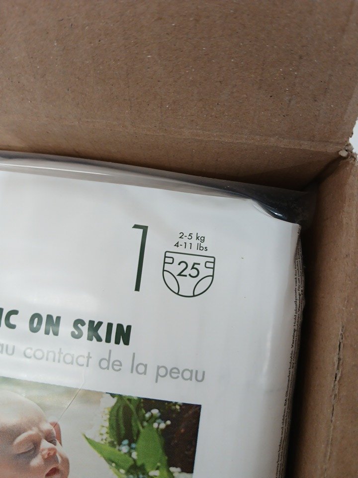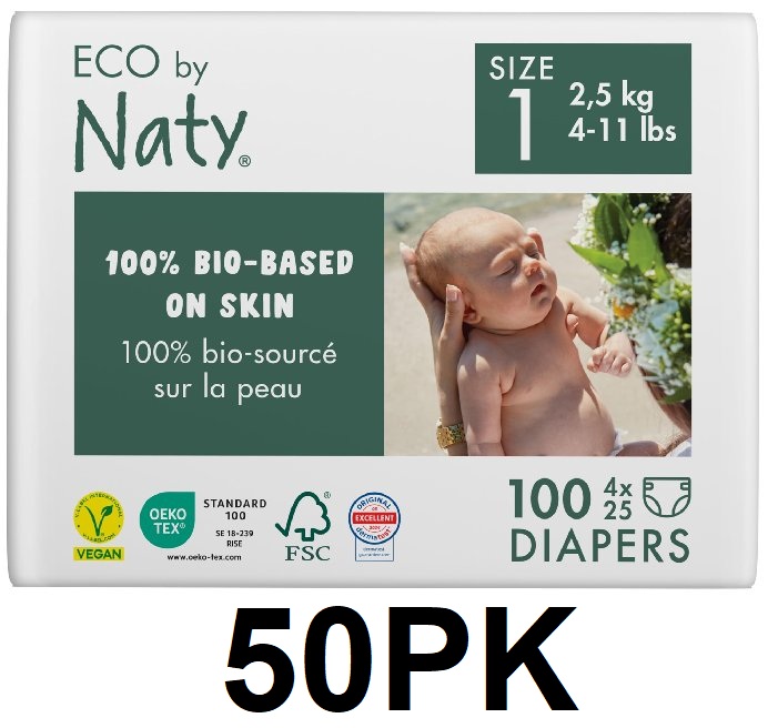100PK (4 x 25PK) Eco by Naty Extra Soft Plant Based Material Diapers - Size 1 - 4-11 LBS Max - White (Model: 8178358I)