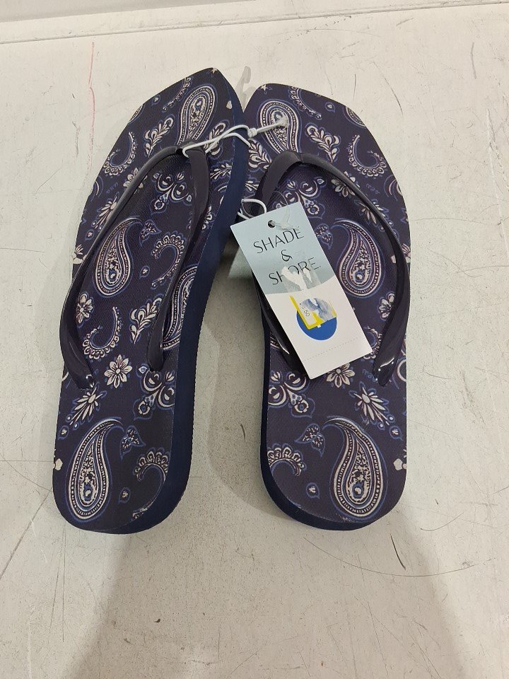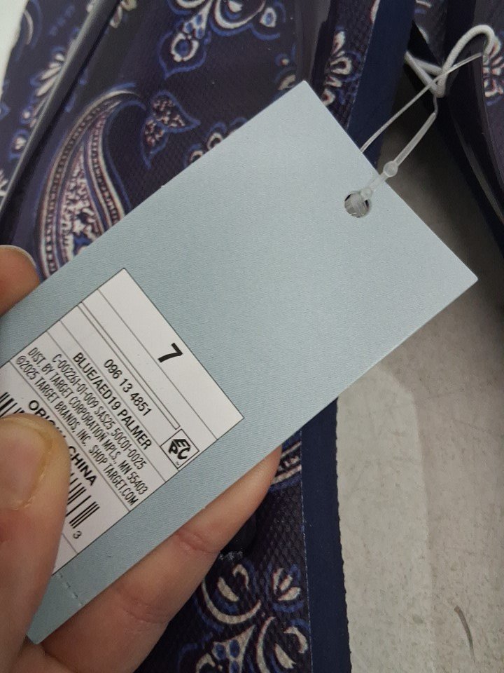 womens Palmer Bandana Square thong strap Toe Flip Flops - size 7 - blue