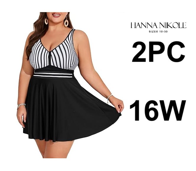 2pc hanna nikole tankini - high waisted boy short bottoms - 16W -black/white