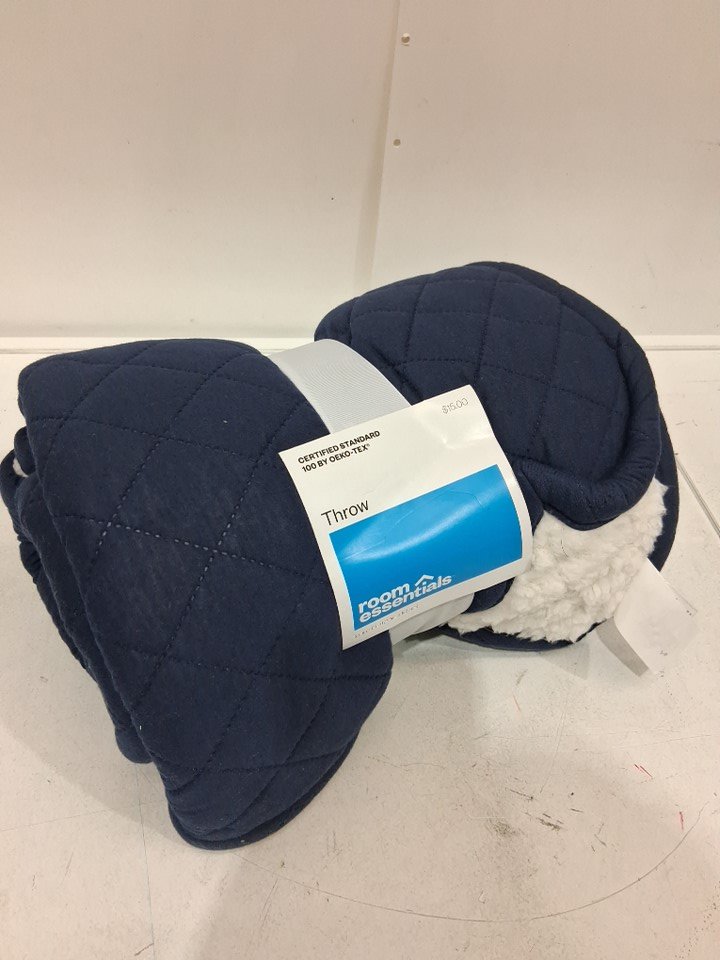 Room Essentials Quilted Jersey Throw Blanket with Faux Shearling Reverse Heathered - 50" X 60"