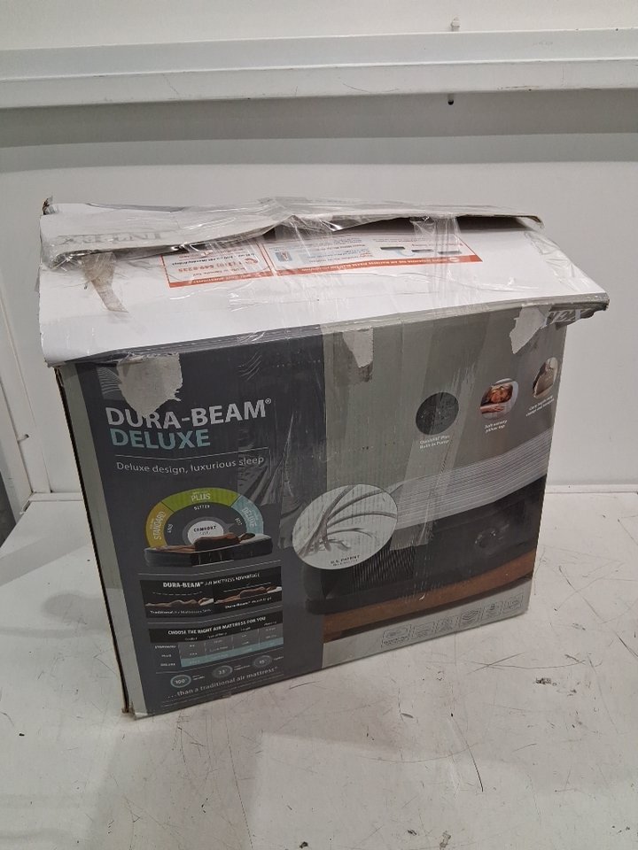 Please note the air mattress shows signs of previous use with dusting and some debris on the top, see photos.