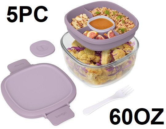 5PC BENTGO GLASS all-in-one salad container- dishwasher safe - 60oz -lavender (model:bglassal-l)