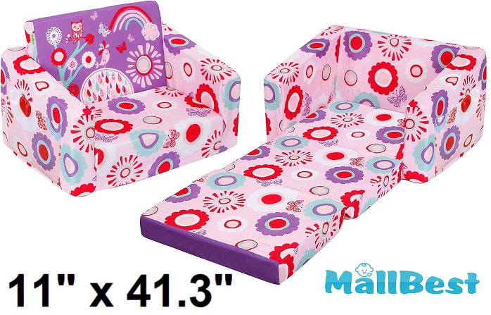 MallBest foldable Kids Sofa bed, flipout sleepover chair for kids - 11" x 41.3" x 17" opened - Pink/Flowers